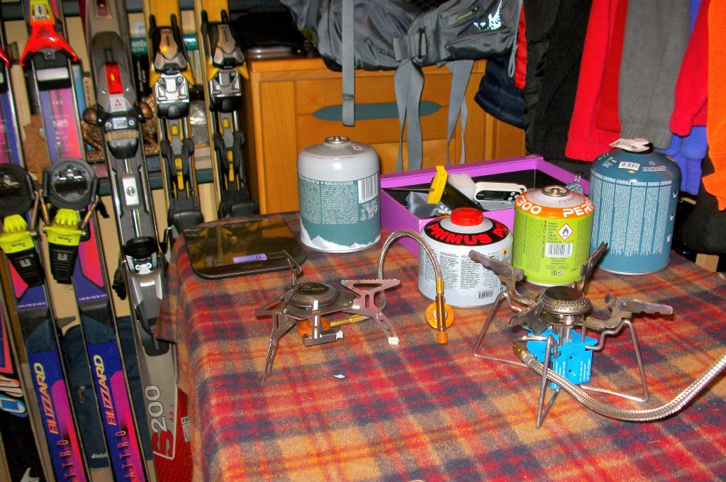 Hemos elaborado un trabajo sobre otros quemadores que saldrá próximamente. No somos partidarios del uso de otros combustibles como la gasolina o el alcohol salvo en circunstancias donde conseguir cartuchos de gas puede ser problemático al no llevar suficientes reservas.
