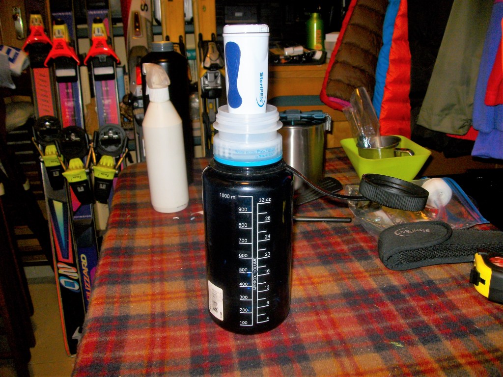 Nunca nos cansaremos de decir que el AGUA A CONSUMIR forma una parte esencial en cualquier travesía. Sin embargo, su peso, aconseja aprovisionarnos de ella progresivamente durante la etapa (siempre que sea posible) y en la acampada, teniendo en cuenta un proceso PREVIO de filtrado y desinfección previa a su consumo.