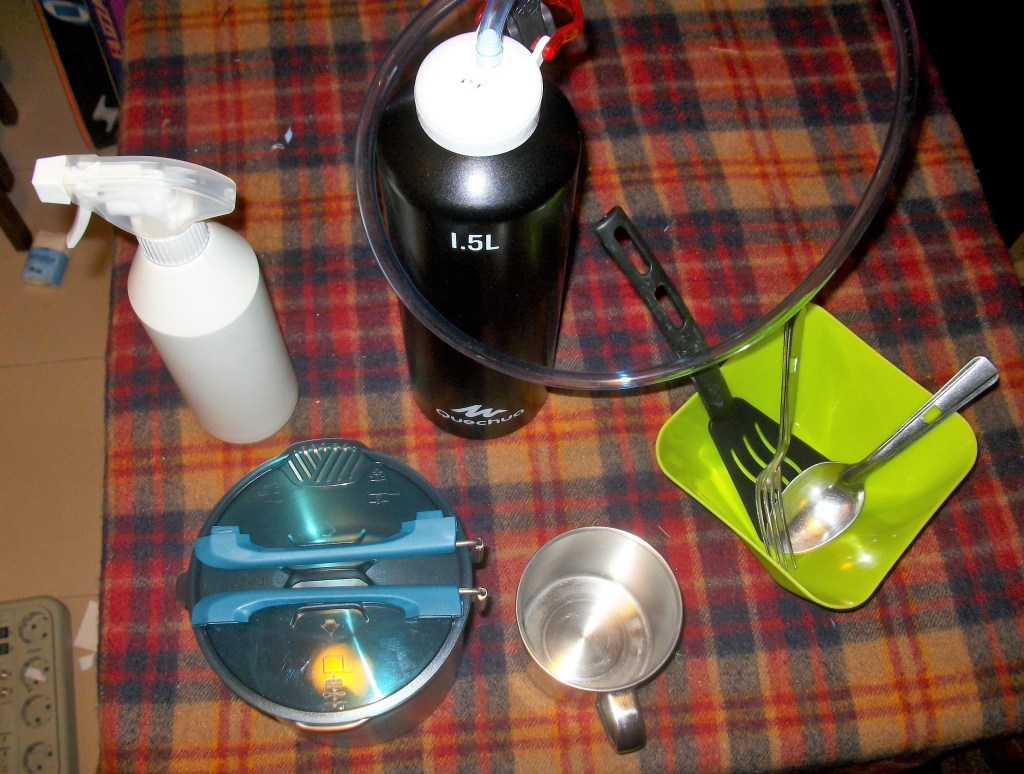 - Utensilios personales: cacillo, cubiertos, navaja, cantimploras, limpieza, etc.
